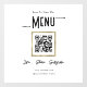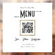 Simple text with business guest option. Qr code for food or service menu with website or social media connection. Like share subscribe