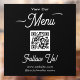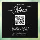 Simple text with business guest option. Qr code for food or service menu with website or social media connection. Like share subscribe