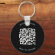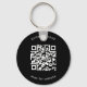 Custom Keychain featuring your QR Code with your business name above and your message below over a black background. These simple keychains make great promotional items for giving to clients, employees or as swag at trade shows and events. Have fun with your marketing and advertising. These QR Code Keychains are especially great for realtors / real estate agents to give as closing gifts for their clients.