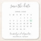 Modern save the date coaster featuring a simple calendar in soft grey with the words, "Save the Date" and your names in an elegant handwriting font and a pastel mint green heart surrounding your date, over a white background. DESIGN TIP: For a column that does not have a date in the first row (week), add a space before the first number. If you need any assistance with customising the calendar, please feel free to reach out to me via the "contact" button.