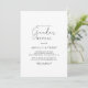 This simple calligraphy gender reveal party invitation is perfect for a rustic baby gender reveal. The simple and elegant design features classic and fancy script typography in black and white.