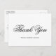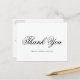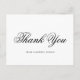Elegant and classic thank you postcard featuring a simple design with "thank you" in a formal black calligraphy along with your business name in a serif font, over a white background. The backside has your return address along with your personal message, signature, title and business name. A traditional and classy design that is great for any professional.