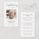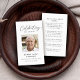 This is an elegant and simple celebration of life memorial prayer card to honor the life of your loved one. The black and white design uses a simple photo and modern calligraphy script. This prayer card can easily be personalized with your own photo and text to create a special tribute for your loved one's celebration of life using the template provided.