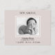 Simple Champagne Pink Birth Announcement. Place for message on back. Customise everything. Black and White filter applied to photo.