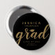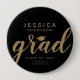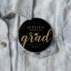 Graduation simple black and gold "Cheers to the Grad" round badge in modern, chic and elegant typography style. Customise with graduate's name, year, and school name.