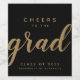 Graduation simple black and gold "Cheers to the Grad" wine bottle label in modern, chic and elegant typography style. Customise with graduate year and school name.
