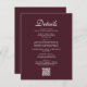 Simple Chic Burgundy Red QR Code Wedding Details Enclosure Card