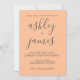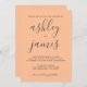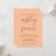 Simple and chic wedding invitation features off-black elegant handwritten script calligraphy and modern typography on a peach fuzz orange background. Simply add your wedding details. Exclusively designed for you by Happy Dolphin Studio. If you need any help or matching products please contact us at happydolphinstudio@outlook.com. We're happy to help you make your wedding the most beautiful day!