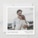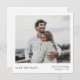 This simple, chic modern photo wedding save the date flat card template features SAVE THE DATE and your names and date beneath your photo. You might choose to change the font, punctuation or colour used for various text elements of this design on the front and/or back. For example, you might choose to give a different colour to the SAVE THE DATE or other text, change that text to read as SAVE OUR DATE or something else, or to delete something or change a text field entirely with a different message. Or you might change the wording of some text, such as changing 'are getting married' on the back to 'are tying the knot', etc. The default colour of the SAVE THE DATE text below the photo is standard black and the names and date text is a slightly softened black by default. We've chosen a grey tone for the text on back, but you might prefer a different colour. On both sides we've set the background as transparent, so that the colour of the paper will simply serve as the base colour. You can choose a colour for the background, if you prefer. Use the intuitive design tools, your favourite photo and your inspiration to make this chic modern minimalist wedding save the date invite template uniquely yours!
