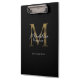 Simple Chic Script Metallic Black Gold Monogram Clipboard