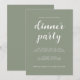 Simple and chic dinner party invitation features white stylish, elegant script calligraphy and modern typography on a sage green background. Simply add your dinner party details. Exclusively designed for you by Happy Dolphin Studio. If you need any help or matching products please contact us via our store chat!