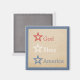 Simple Chic Stars July 4th Magnet featuring a faux textured paper background and a trio of red, white, and blue stars. This stylish magnet is a great way to show your patriotic side at home or at the office! Product shows the phrase God Bless America but may be customised with your own text instead.