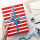 Simple Chic White Stripes Pattern On Red Wrapping Paper