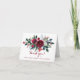 A delicate and simple winter botanical floral bouquet thank you card with red burgundy and white peony flowers and with pine green seasonal fir branches, red berries and foliage to express your gratitude to your friends and family after your wedding or any other important event in your life. Personalize it with your signature and text!