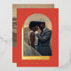 These simple and elegant holiday cards say "Merry Christmas" and feature your photo in a modern arch shape, with a gold foil arch as an accent, on a bright red background. The back of the card has room for an additional photo, plus a short personal message.