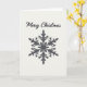 This simple and modern Christmas card design features a striking black snowflake centered against a clean, off-white background. The bold, intricate snowflake illustration creates a beautiful focal point. Above the graphic, the phrase "Merry Christmas" is written in an elegant, flowing script. The card's high contrast and focus on just two elements—the text and the snowflake—give it a sophisticated, minimalist appeal. It is a stylish choice for sending sleek, modern holiday wishes to anyone on your list. 🎄🎁!
