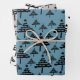 Simple Christmas Tree Pattern Blue Beige Holiday Wrapping Paper Sheet