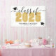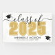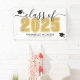 This classic yet modern graduation party banner is the perfect way to celebrate the Class of 2025. The design features an oversized "Class of 2025" in a bold yellow gold hue, accented with black and white typography and elegant grey script. Two graduation cap icons add a festive touch, while space below allows for the graduate’s name and school, making it a personalised centerpiece for the celebration.