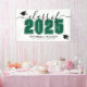 This classic yet modern graduation party banner is the perfect way to celebrate the Class of 2025. The design features an oversized "Class of 2025" in a bold emerald green hue, accented with black and white typography and elegant grey script. Two graduation cap icons add a festive touch, while space below allows for the graduate’s name and school, making it a personalised centerpiece for the celebration.
