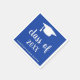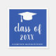 Minimalist graduation napkin featuring a simple and classic design with a grad cap and "class of year" in a thick script handwriting along with the graduate's name in white over a blue background. The background colour may be changed to any colour you wish. A traditional style with a modern flair for a girl graduate. These paper napkins are a great way to add a personal touch to your graduation party.