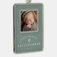 A beautiful classic design to commemorate baby's first Christmas, with a favourite photo on an inset panel. Personalise with baby's name in classic serif lettering, along with the year, on a soft eucalyptus green background with a single snowflake accent.