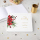 This simple classic Christmas wedding guest book features a clean, bright white backdrop with simple, minimalist black and gold lettering and handwritten calligraphy accents. Embellishments of beautiful and classic green and red Christmas wreaths with delicate gold features create a perfect winter holiday aesthetic while maintaining a polished elegance for your Christmas wedding or other special event. As with all of our designs, if you have any questions concerning the design or would like something specially made to coordinate with your wedding, please just ask.