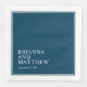 A classic modern design for weddings or engagements, this paper napkin has a double frame in white with a navy blue background. The bride and groom's names and wedding date are shown in the lower left corner of the design. The text is left justified for a contemporary effect. Personalise the text with your names and date. Note: these paper napkins are available in 3 sizes: dinner size (shown here), luncheon size and cocktail size.