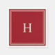 Simple and elegant with classic styling, this design features a double-lined border in a tasteful shade of neutral ivory beige over a cranberry red background. The border is perfectly symmetrical, framing the entire napkin with two parallel lines that run along its perimeter. A text template is included in the centre of the design to personalise with your monogram initial. These napkins are great to have on hand for holiday or every day entertaining and have the ease of being disposable for your convenience. Available in 3 sizes: shown here in cocktail size, also available in luncheon or dinner size.