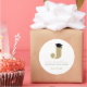 Simple Classic Gold Monogram Letter 'J' With Modern Graduation Cap On A Plain White Background, Grad Party Favour Sticker / Envelope Seal.