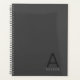 Modern classic and understated masculine monogram initial and personalised name printed on the cover of a dark grey planner in a classic minimal, sans-serif font for a simple, professional and modern daily calendar to help you get organised and keep track of your schedule for work, school, family, or business.