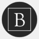 Simple Classic Monogram | Black w/ White Text Classic Round Sticker