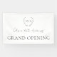 Classic black and white Grand Opening banner featuring a simple layout with your monogram inside of a wreath / crest along with your name in an elegant script / calligraphy. A feminine and girly design that is great for any business big or small.