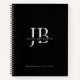 An elegant text template layout that includes your first and last initial along with your name and company name give this notebook a professional look. Shown here in popular ivory beige text with classic black background, the look is timeless. Personalise with your info.