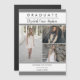 Simple, classy and elegant three photo white and grey with black text graduation announcement design featuring script "signature" text for your grad's name.