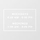 Simple clean store open hours sign for restaurant, cafe, boutique, salon, office and more.