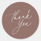 Simple Cocoa Brown Calligraphy Script Thank You Classic Round Sticker