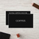 Simple modern coffee shop loyalty card featuring 'coffee' in trendy font on the front. Personalize with the name of your shop , address etc. To edit this template click customize further.