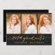 Handwritten collage photo card inviting your family and friends to your daughter's graduation party. Simple Collage Glitter Graduation Party Invitation for 2014. Design by Elke Clarke © Visit our shop www.zazzle.com/monogramgallery* for more designs and styles. A simple gold foil typography handwritten script font text overlay on a black glitter background (printed photo effect) with the words "2014 Graduate" with a three photo collage design. Replace sample photos with your own. Black and gold colours.