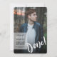 A modern minimalist graduation announcement photo card design featuring a simple flat coloured rectangle colour box on a full bleed photo. The box can be removed and you can personalise and create a new box of any size in any custom colour of your choice within the edit product page.