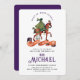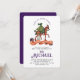Prepare to celebrate a regal birthday with a magical mediaeval touch! This enchanting invitation showcases a fantasy Prince Charming in a green cape, gallantly riding a noble steed. The birthday child's name stands out in a sophisticated deep purple, adding a royal flair. Essential party details—time, date, and location—are elegantly displayed in a sleek black font, ensuring clarity against a crisp white background. On the reverse side, a rich purple backdrop completes the regal theme. Perfect for a day of knights, steeds, and adventure, this design promises an unforgettable mediaeval celebration. Ideal for kids' birthdays with a whimsical, knightly twist!