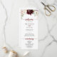 This simple colourful classic wedding program is perfect for a rustic wedding. The design features burgundy, pink, blush and white watercolor flowers with green leaves and red berries neatly bunched into attractive bouquets.