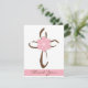 Simple Contemporary Cross with Pink Flower Note Thank You Card