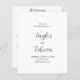 Contemporary black and white wedding program featuring a simple and minimalist layout with your names in an elegant calligraphy script and your wedding details below. The back has your order of ceremony, wedding party and thank you message. A modern design that goes with any style of wedding.