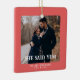 Simple Coral First Christmas Engaged Custom Photo Ceramic Ornament