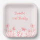 Unique simple wedding paper plate featuring romantic and elegant coral pink flowers and butterflies on light pink background