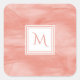 Simple Coral Pink Subtle Marble Modern Monogram Square Sticker