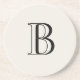 Cream and black Monogram Cream background stone coaster. Monogram gift.