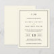 Simple budget wedding invitation featuring a modern yet elegant design with your two letter monogram at the top, a bold date layout and your details surrounded by a thin border. All design elements are in black over a cream / ivory background and may be changed in the design editing tool. A chic and stylish design that is great for a minimalist couple.