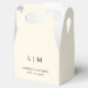 Simple yet elegant Wedding Favour Box featuring a modern minimalist design with your two letter monogram along with your names and date. All design elements are in black over a neutral cream / ivory background and may be changed in the design editing tool. These classic Wedding Favour Boxes go well with any style of wedding.