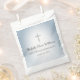 Dusty blue boy's First Communion favour bag, with a simple cross and customisable lettering design. A great addition to planning that special religious celebration in your child's life.
